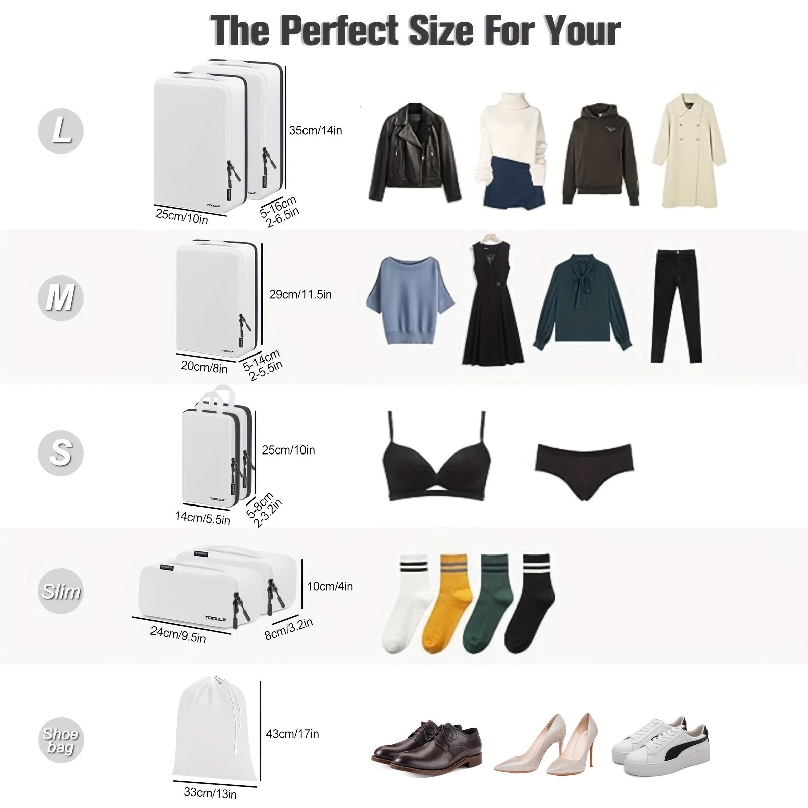 - Compared to Standard Packing Cubes: Unlike regular packing cubes, the compression feature of TOMULE's 8-Piece set allows you to minimize space usage significantly, enabling you to pack more without the need for additional luggage.