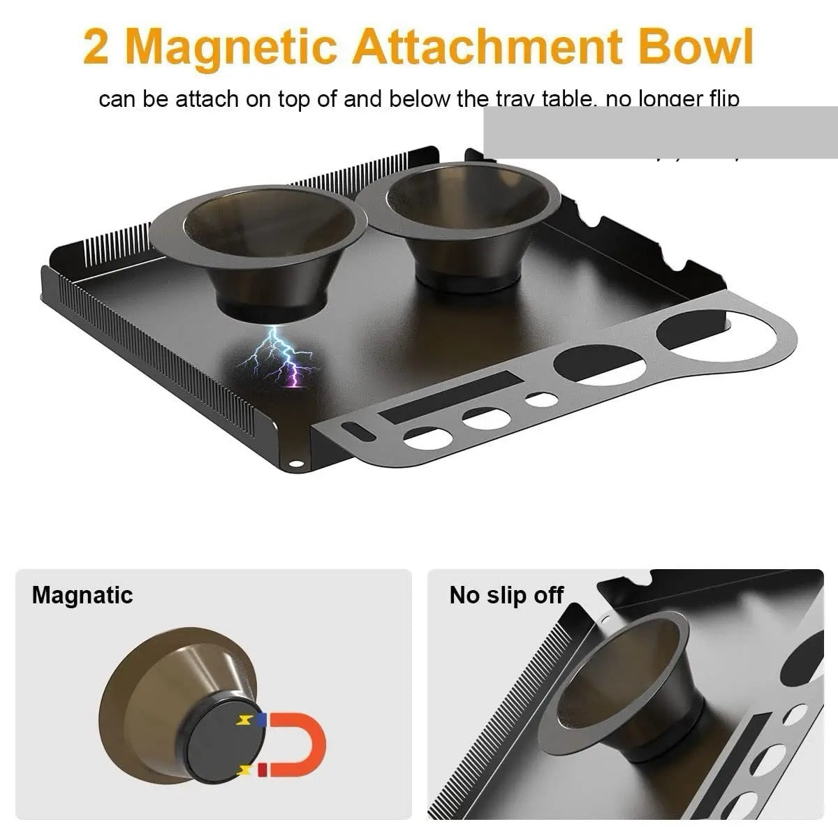 - Quick Clean: Wipe all surfaces, including trays and magnetic bowls, with a damp cloth and mild detergent.